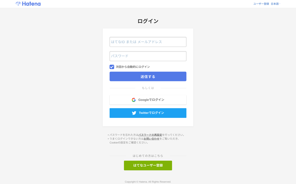 はてなブログでは以下のような画面になるので、IDやパスワードを入力する欄のxpathを取得し、入力していきます。